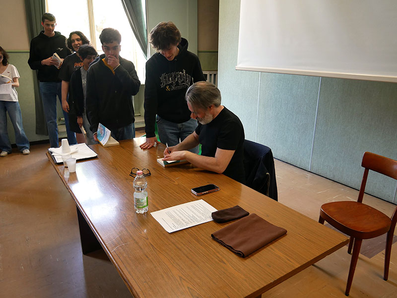 “Dare voce a chi non ce l’ha”, è questo il compito dello scrittore e lo ha compreso parlando con i nostri giovani studenti. Quegli stessi ragazzi che sono spesso protagonisti dei suoi romanzi, molto amati fin dal 2016, anno dell’esordio narrativo, e che, con le loro fragilità e i loro desideri, offrono nuovi punti di vista con i quali osservare la società.